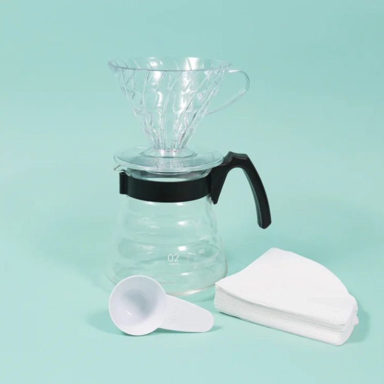 하리오 V60 입문용 핸드드립세트에는 아래 품목이 포함되어 있습니다.