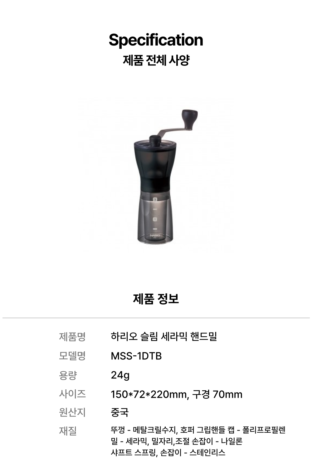 하리오 슬림 세라믹 핸드밀 MSS-1DTB