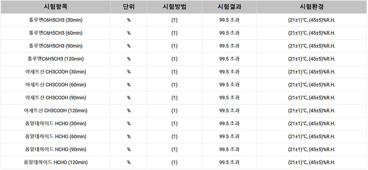 까다롭기로 유명한 한국건설생활환경시험연구원에서 최고의 제품으로 테스트를 통과하였습니다.
