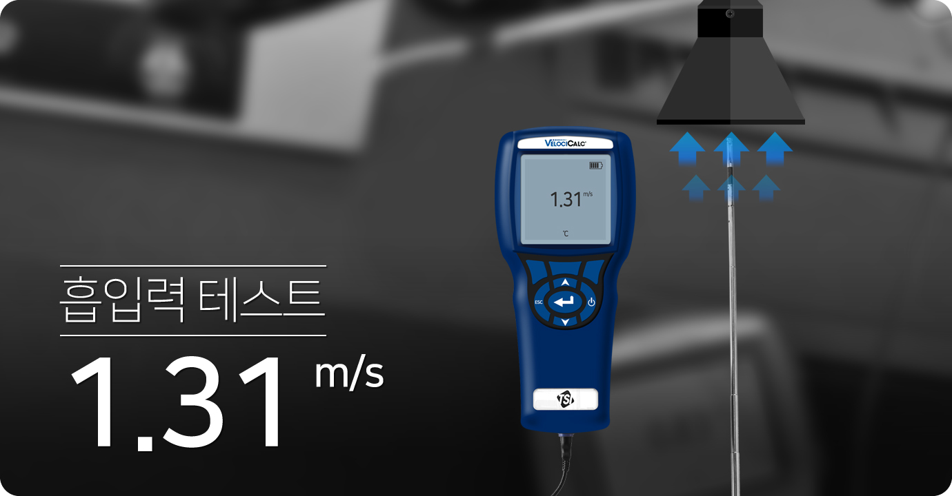 풍속 상방향 흡입 시 약 1.3 m/s 로 기준충족