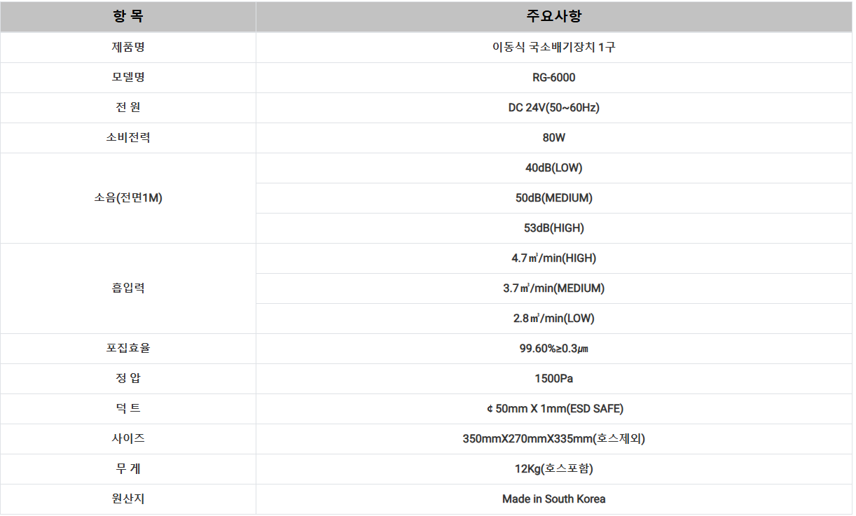리젠아이 공기청정 이동식 국소배기장치 1인용