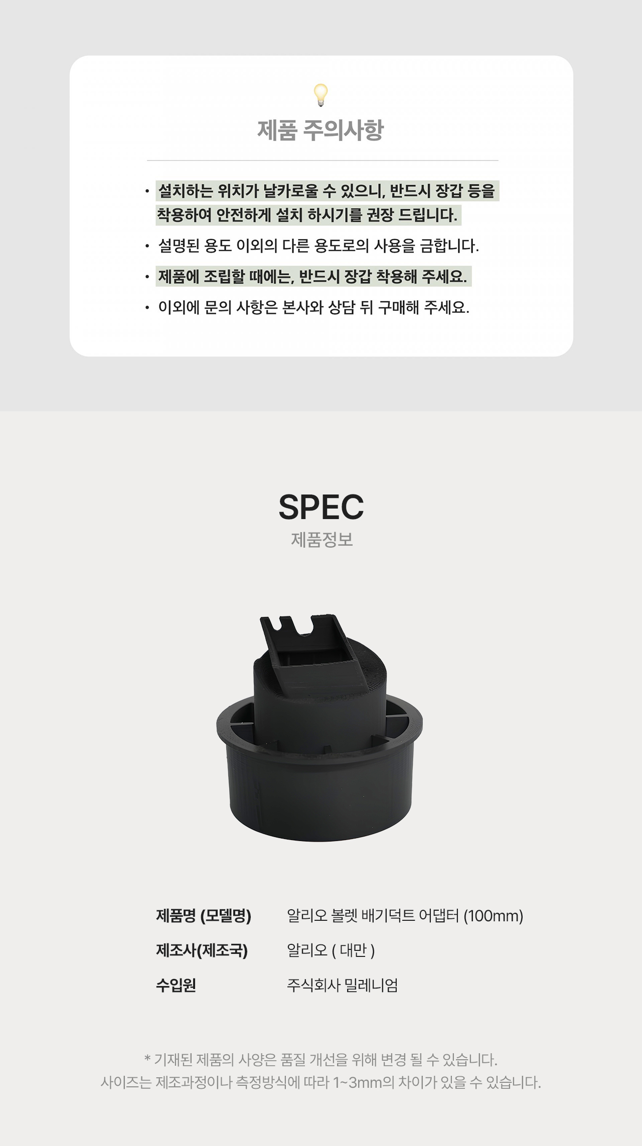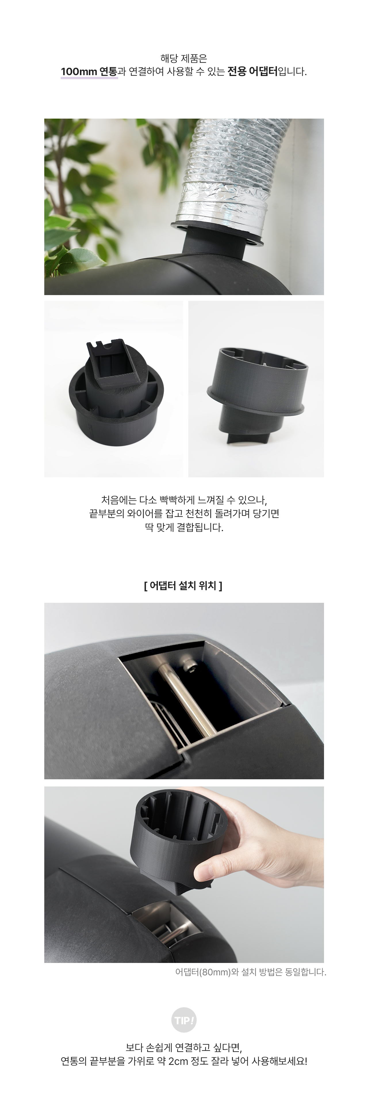 기존의 80mm 연통 전용 어댑터와 구분하여 사용하셔야 합니다.