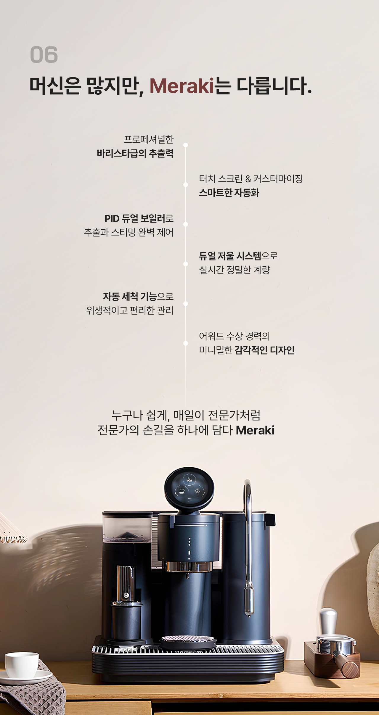 프리미엄 메라키 가정용 에스프레소 머신 Meraki 출시!듀얼 저울·PID 온도 제어·스팀 완드 탑재, 전문가급 추출을 집에서도!!!