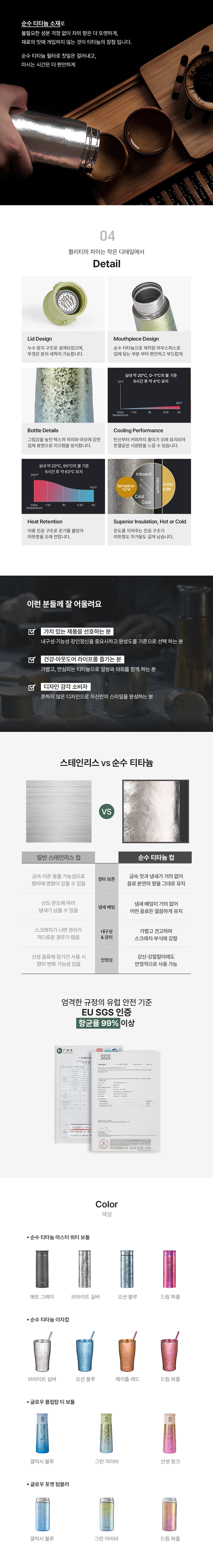 페인트도, 코팅도 쓰지 않았습니다.색의 변화를 정밀하게 제어하는 TI ANOX 기술로스크래치와 벗겨짐 걱정 없이,시간이 지날수록 더 깊어지는 색감을 완성했습니다.
