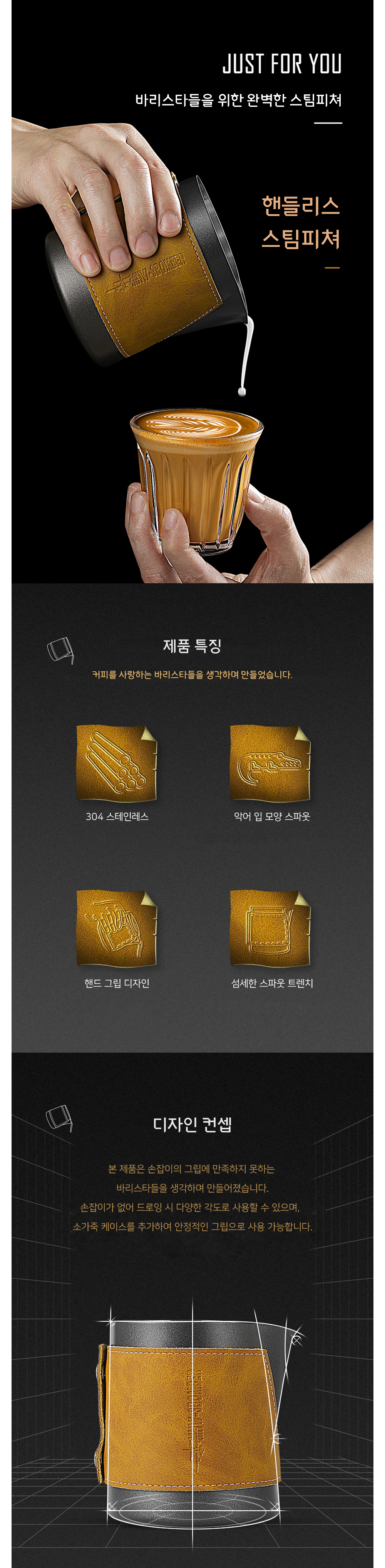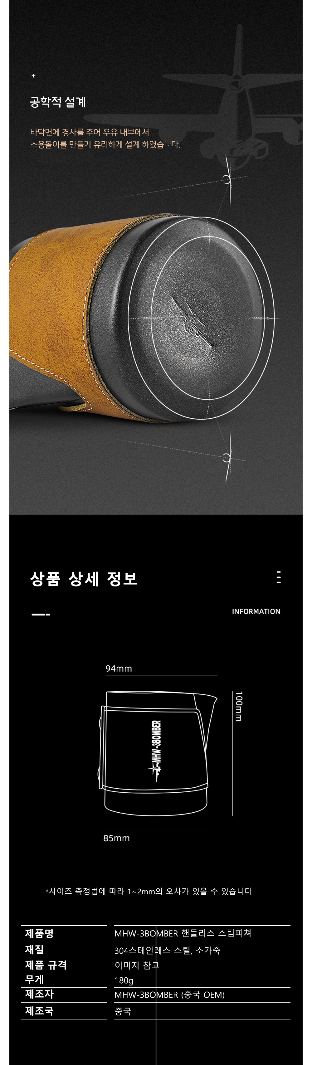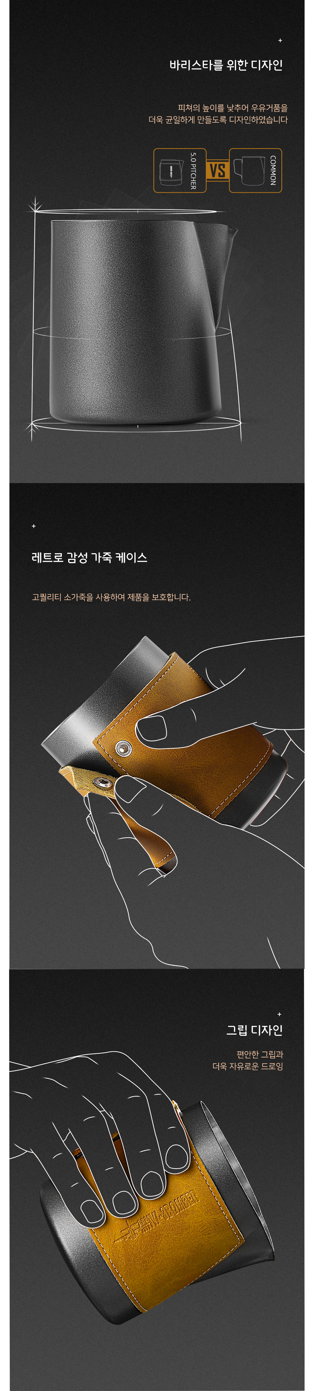 쓰리바머 핸들리스 라떼아트 스팀피쳐 400/500ml